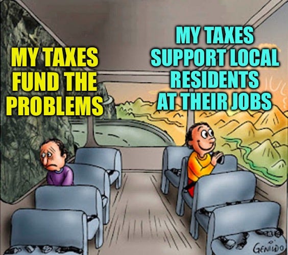 Hearing that made me think that my property taxes were part of what created his salary — and that makes me feel good about paying my taxes; knowing someone like Austin benefited from them; a hard-working, blue collar worker and local resident who took action when someone needed help on the bus he happened to be riding one day.